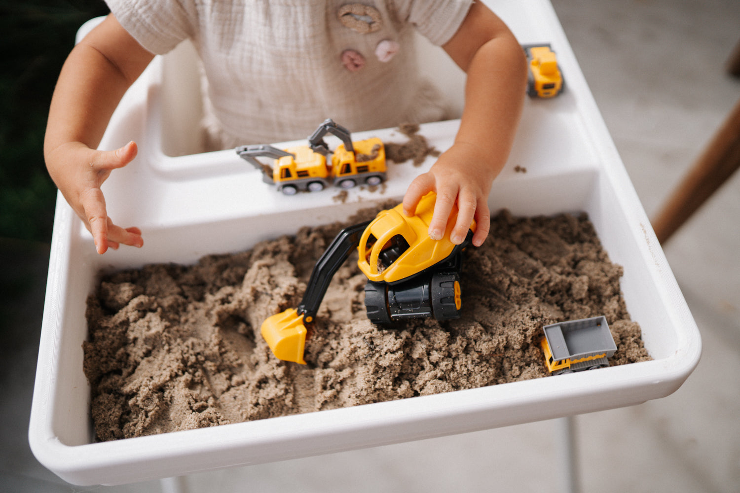 der hibibo one bietet eine erhöhte spielfläche, die wasser, sand und lebensmittel sicher zurückhält. er verwandelt den hochstuhl in einen vielseitigen, leicht zu reinigenden spielort.